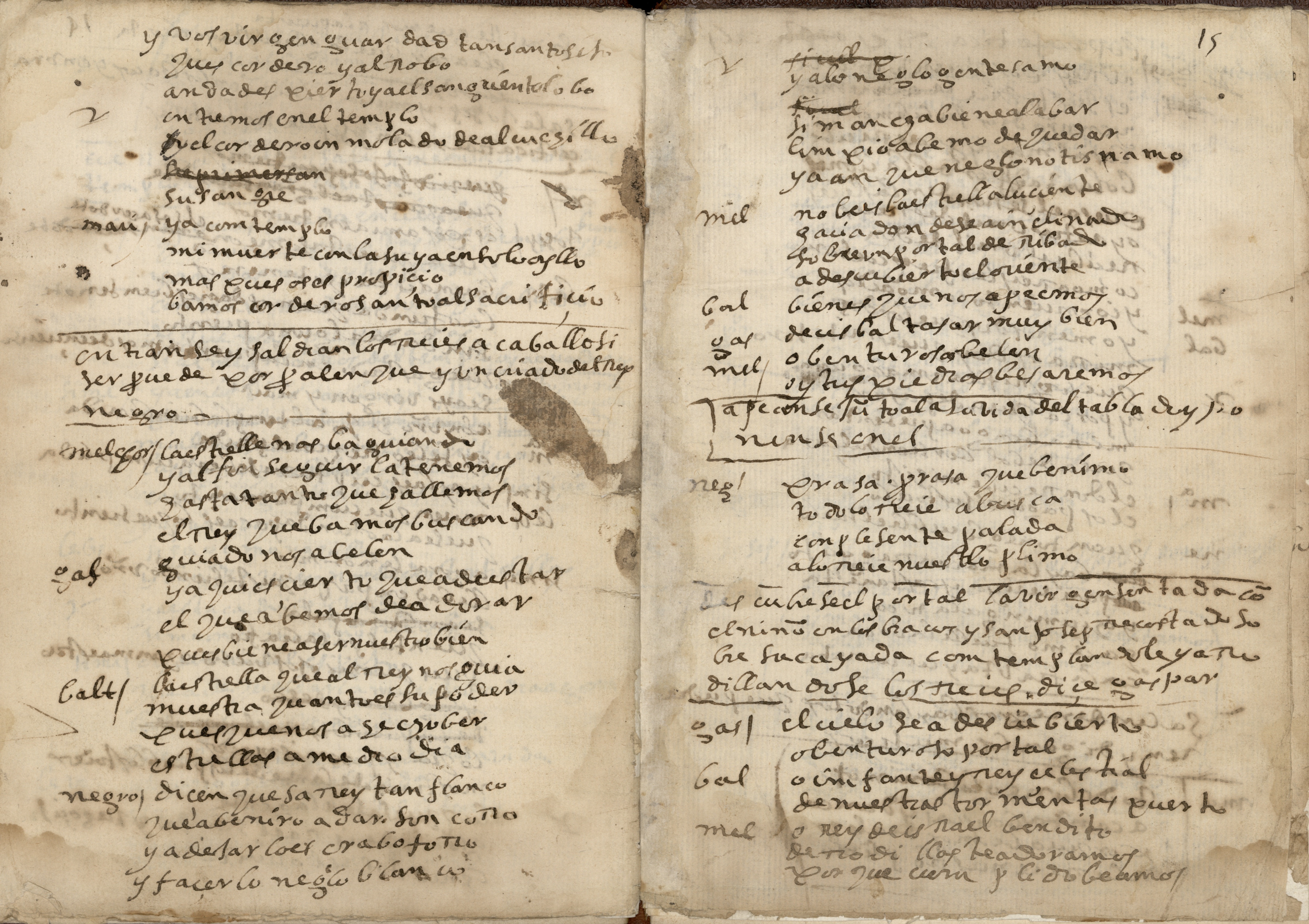 1) Ms. 1125, 14.783 (BNE), G. de Mesa, El nacimiento 2) A veces usa el tilde para reemplazar la "n" 3) Usa "io" en lugar de "yo" |