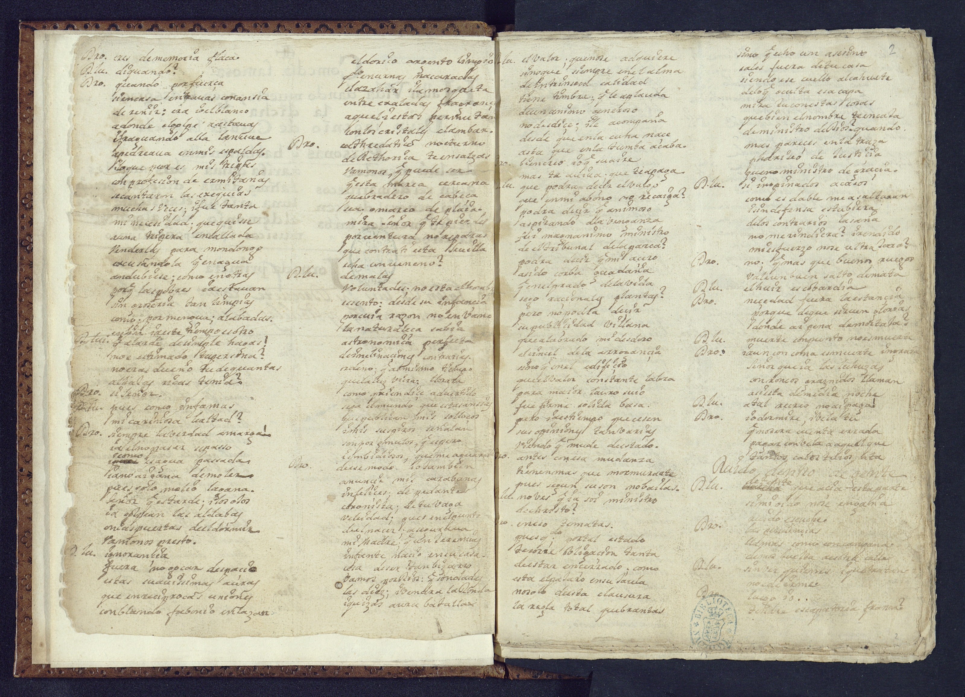Notas: 29 hojas. 1) PM: Comedia de un ingenio de Castilla la Vieja (D. Antonio Tello de Meneses). ¿Original? Con la media firma y rúbrica del autor y fecha de 1711. 2) (f.1r) empieza con el título, seguido por identificación de que "De un ingenio de Castilla la Vieja"; y los personajes escritos con un trazo muy elegante y claro, de letras grandes y con mucha tinta 3) Obra escrita a dos columnas, con correcciones mínimas por la misma mano. 4) f.27v: La media firma, "Tello" con su rúbrica y la fecha al fin de la comedia. 5) f. 28v: La décima de Herrera, y en f. 29r, la misma mano anota una lista de gastos: pagos a un actor, Matheo, y a una actriz, Isabel, "para animas", zapatos de rosilla, dos panes, aceite y vinagre, etc. |