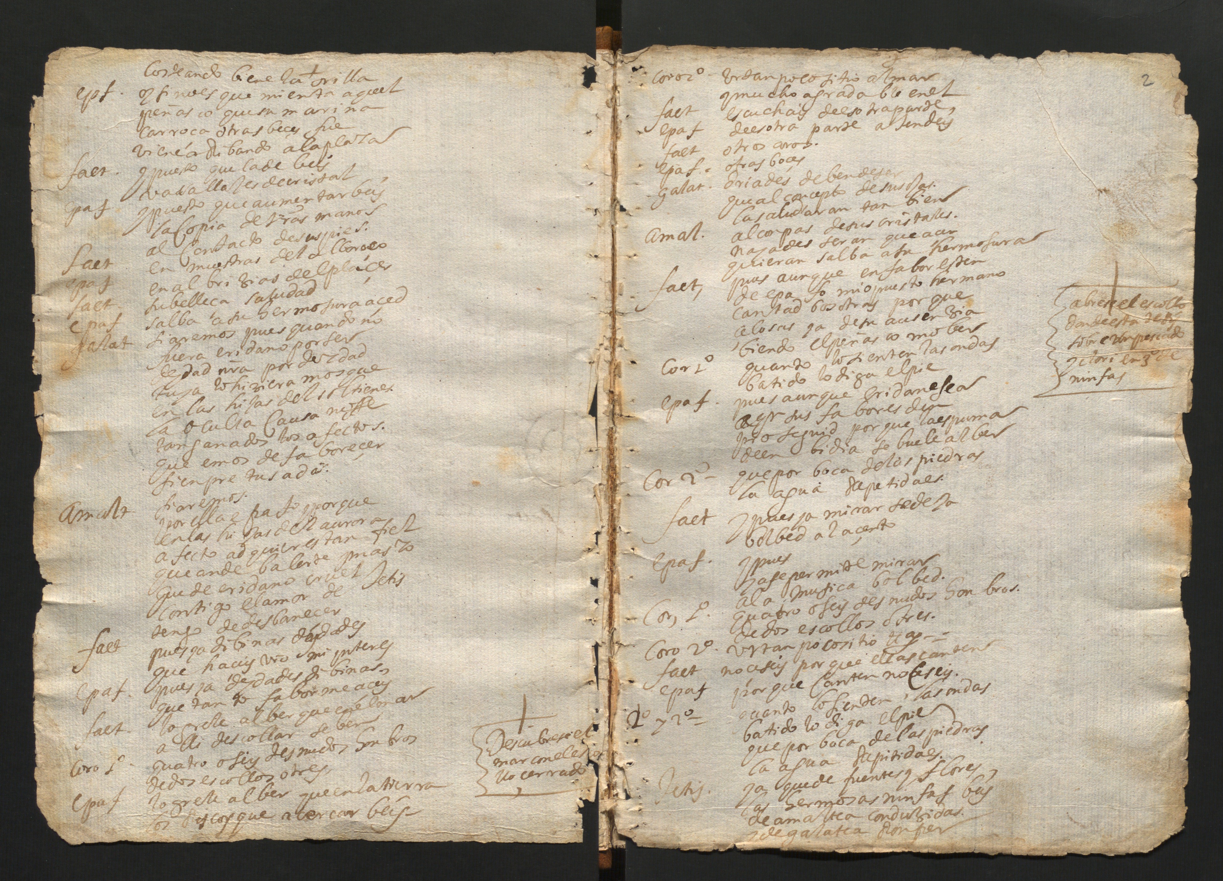 48 hojas Notas: 1) PM: Otro ms. (cf. 16.539 y Res. 120). Letra del s. XVII. 2) MG: Copia de dos manos, sin enmiendas. Mano 1 (P1443): Jornadas 1r y 2, ff. 1-28v. Mano 2 (P1444): Jornada 3, ff. 31r-48v |