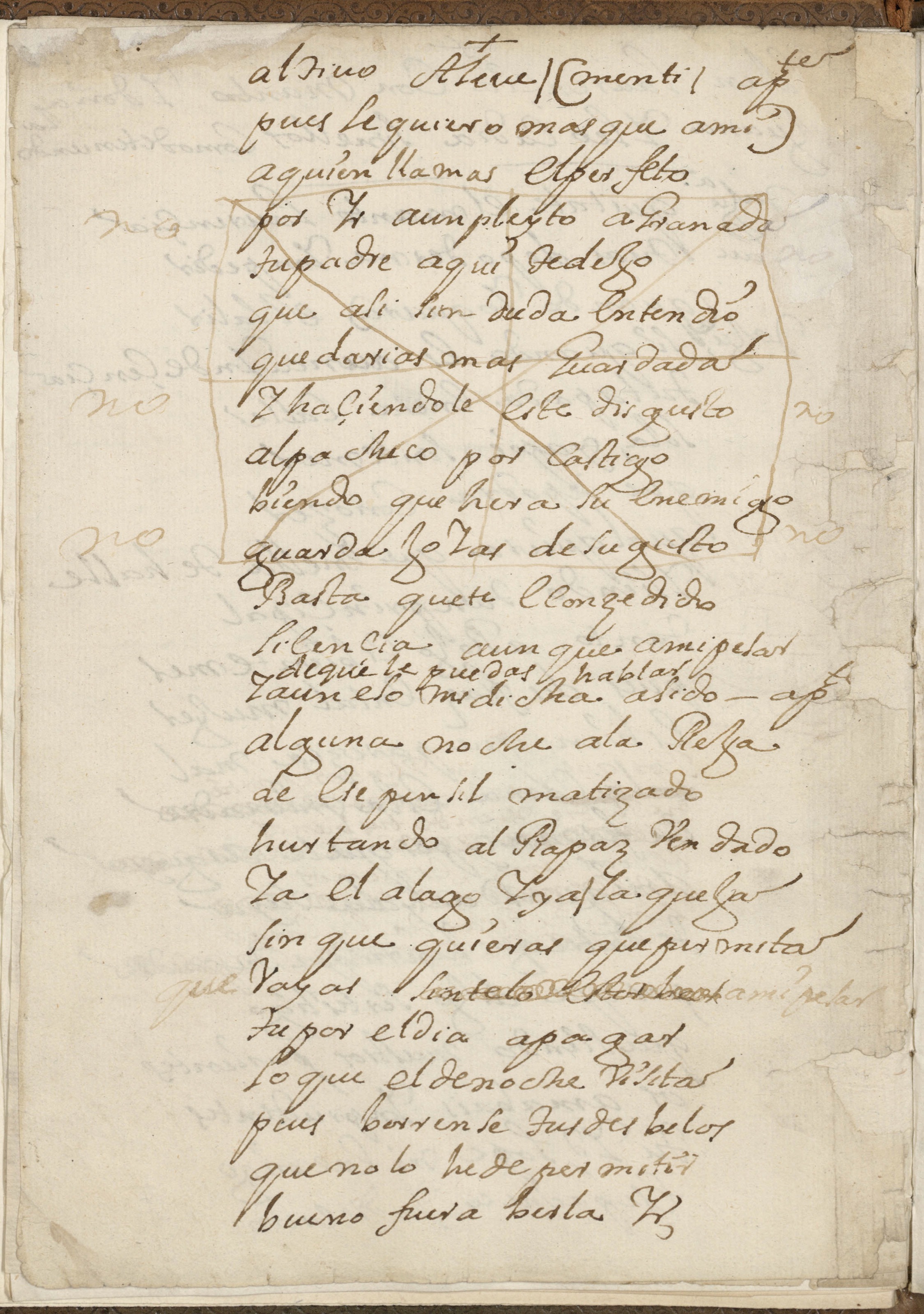 f.3r: - otros 4 versos entrados entre líneas por G. de Prado en una tinta más clara, tachando ligeramente los versos originales; los otros dos mss de la obra siguen la versión revisada, y omiten algunos pasajes marcados en este para omitir, eg, f.3v.; pero no todo lo cortado de ff. 64v-65r.
