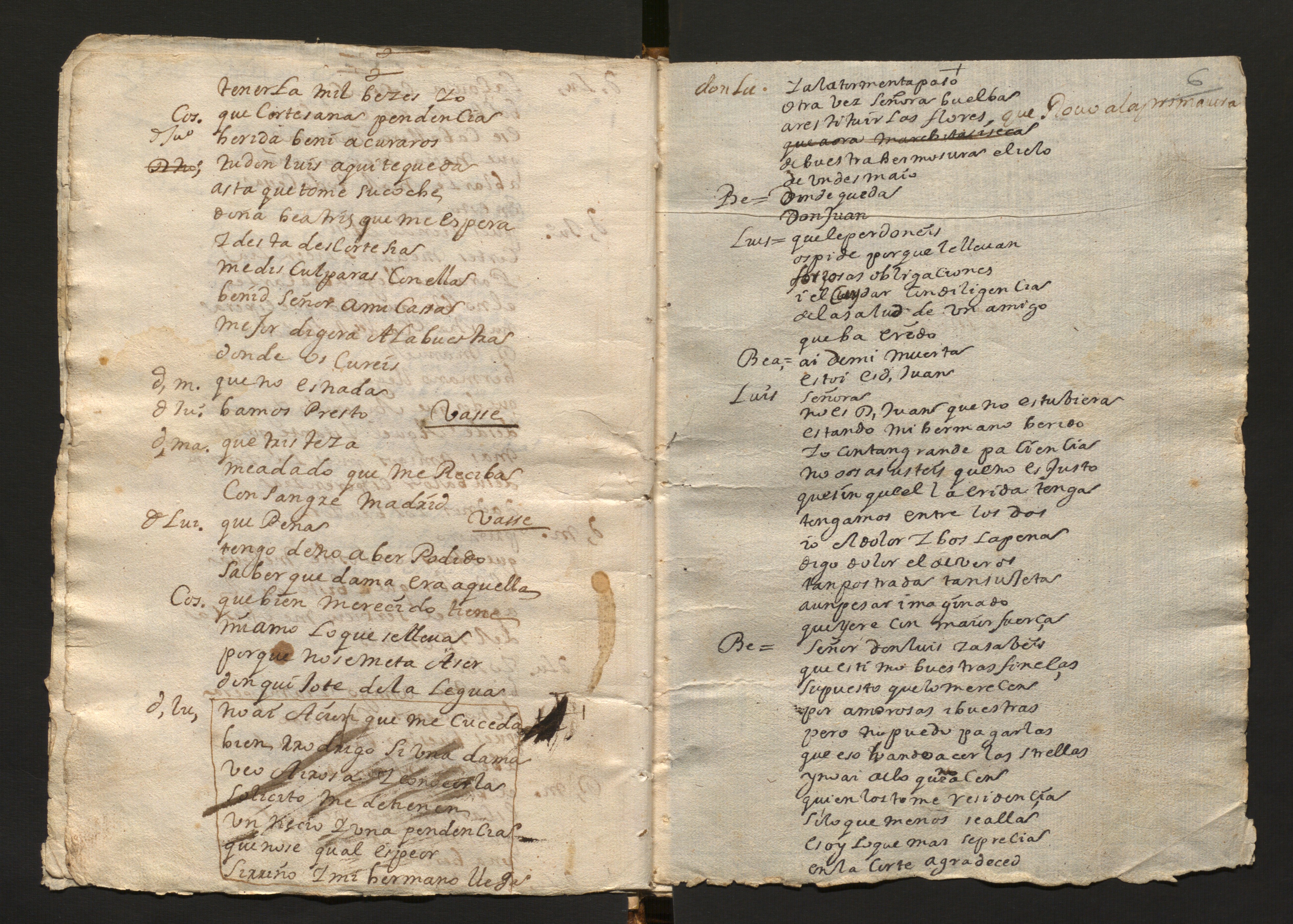 1) Ms. 1058, 16.622 (BNE), P. Calderón de la Barca, La dama duende, f. 6r-v Muy parecida a M055; verificar foliación |