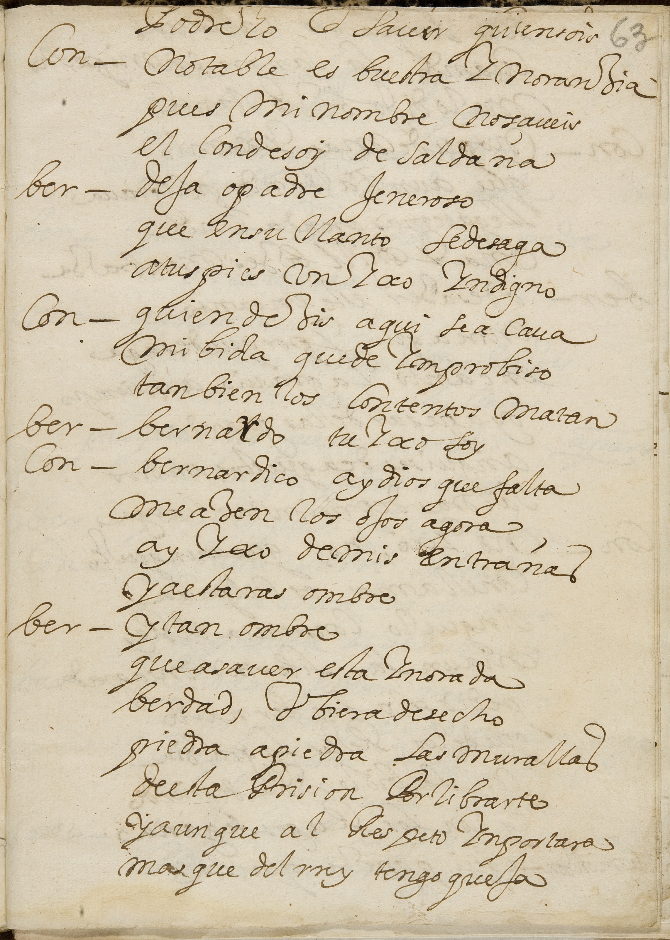 f.19r: " Puesto que el Conde os crio ... ya no me Coxen de susto"