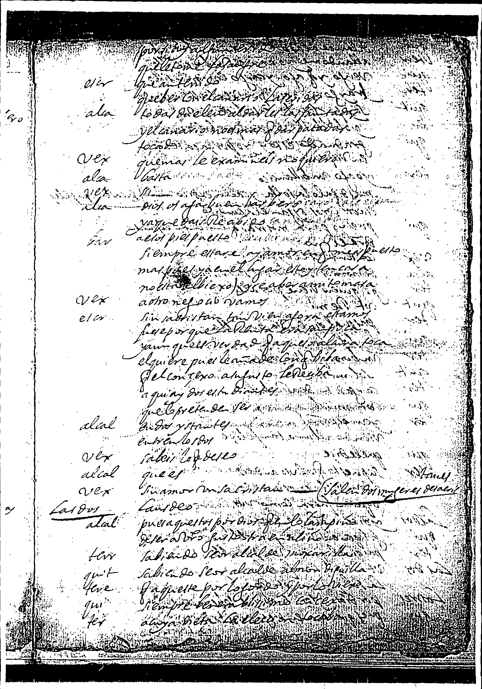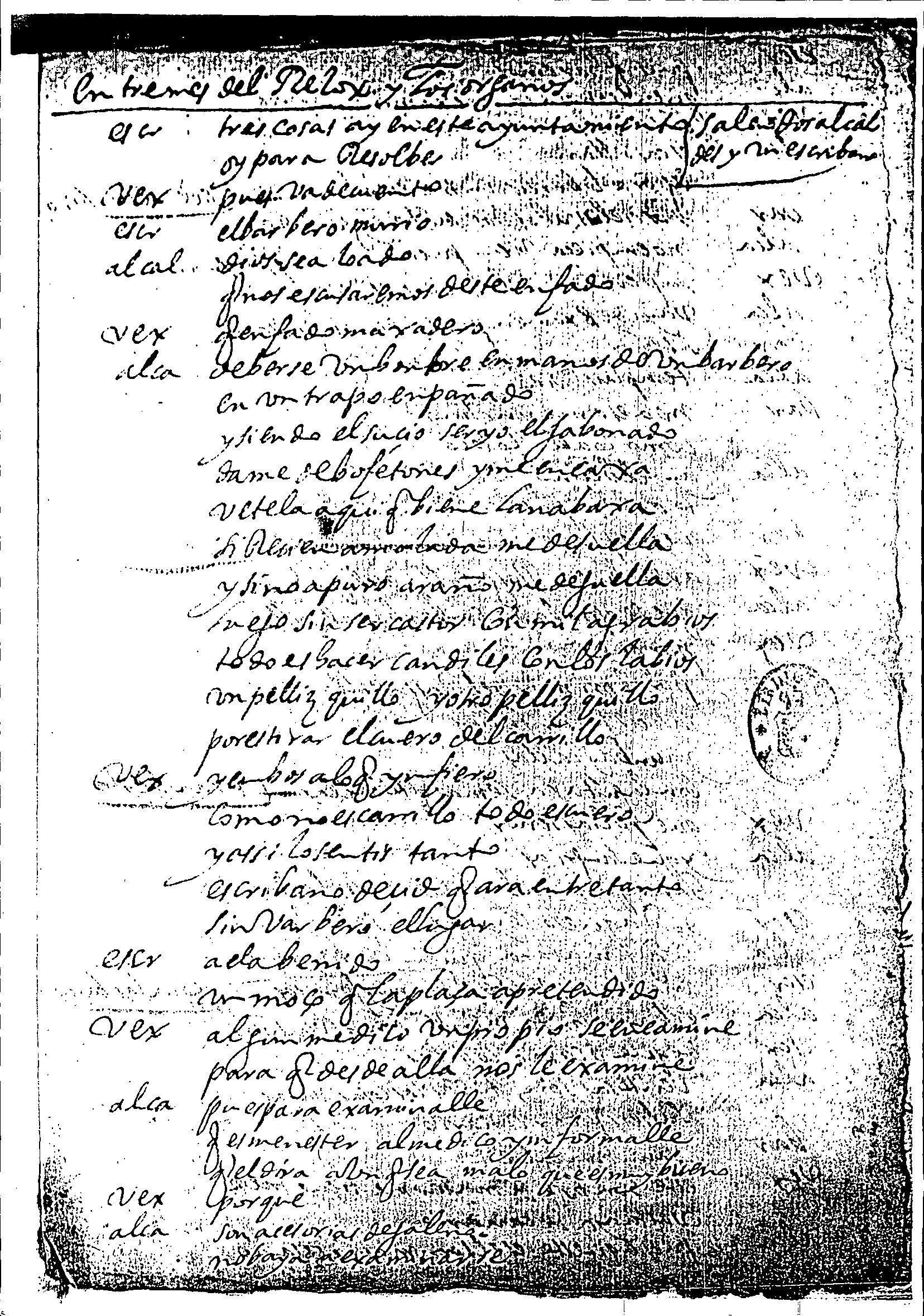 1) Ms 0079, 17.005 (BNE), Matos Fragoso, El reloj y los órganos 2) Usa la Y inicial y también entre palabras, como vocal (unyforme, ynfiero, baylare, etc.) 3) verbos compuestos unidos y sin h (abenido, equerido, etc) 4) doble ss: assi, benerabilissimo, etc. 5) x por j: maxadero, nabaxa, ancaxa, etc. 6) h 14- = hace una curva completa en la parte superior; 7) P 21- = baja y sube casi por el mismo camino, cruzando desde la izquierda a la derecha, y desde ahi hace la curva; 8) P25- = baja y sube sin cruzar; 9) Z22- = dobla en foma curvada y no angular; 10) Que 38- = el extremo inferior dobla en un ángulo agudo hacia arriba. |