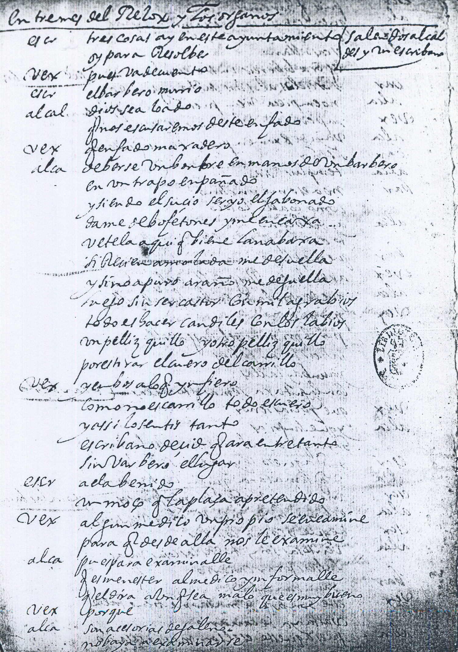 Folios de Muestra: BNE Biblioteca Digital Hispánica PID 1673384 Micro 7517, 15 fot. A digitalizar: f.1r: "Entremés del reloj y los órganos" f.2r: "acuya dieta la elección tocaba" f.4v: "Sale, vex" f.5v: "Pues nos bastan que queden los dos casados" |