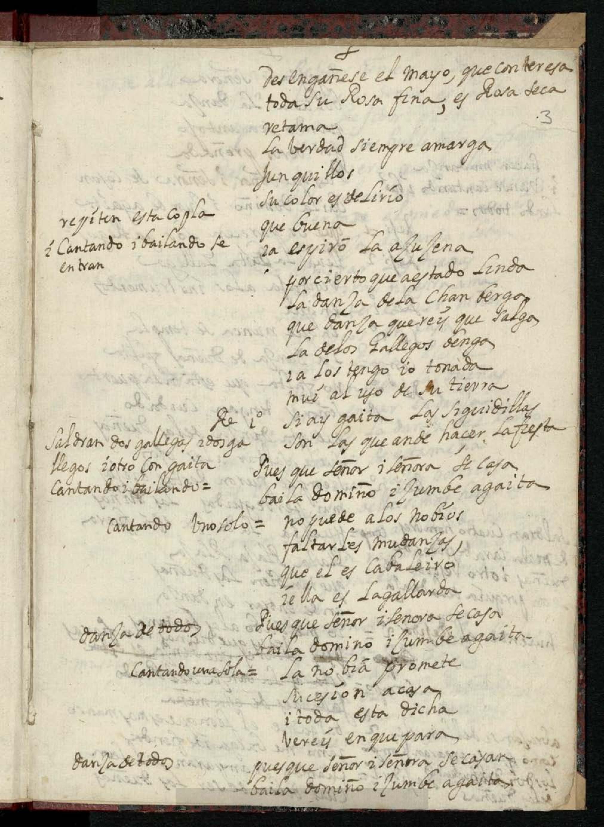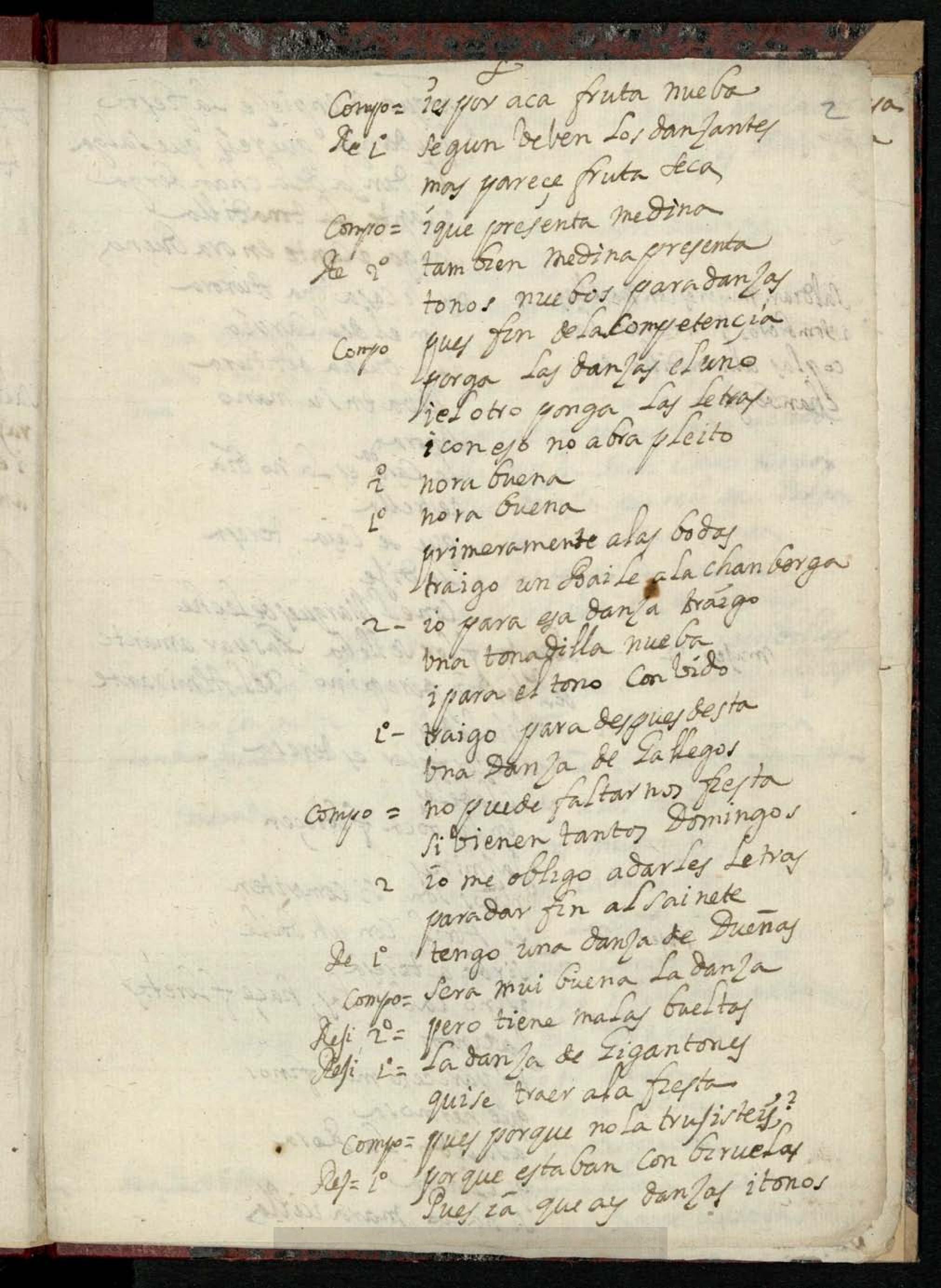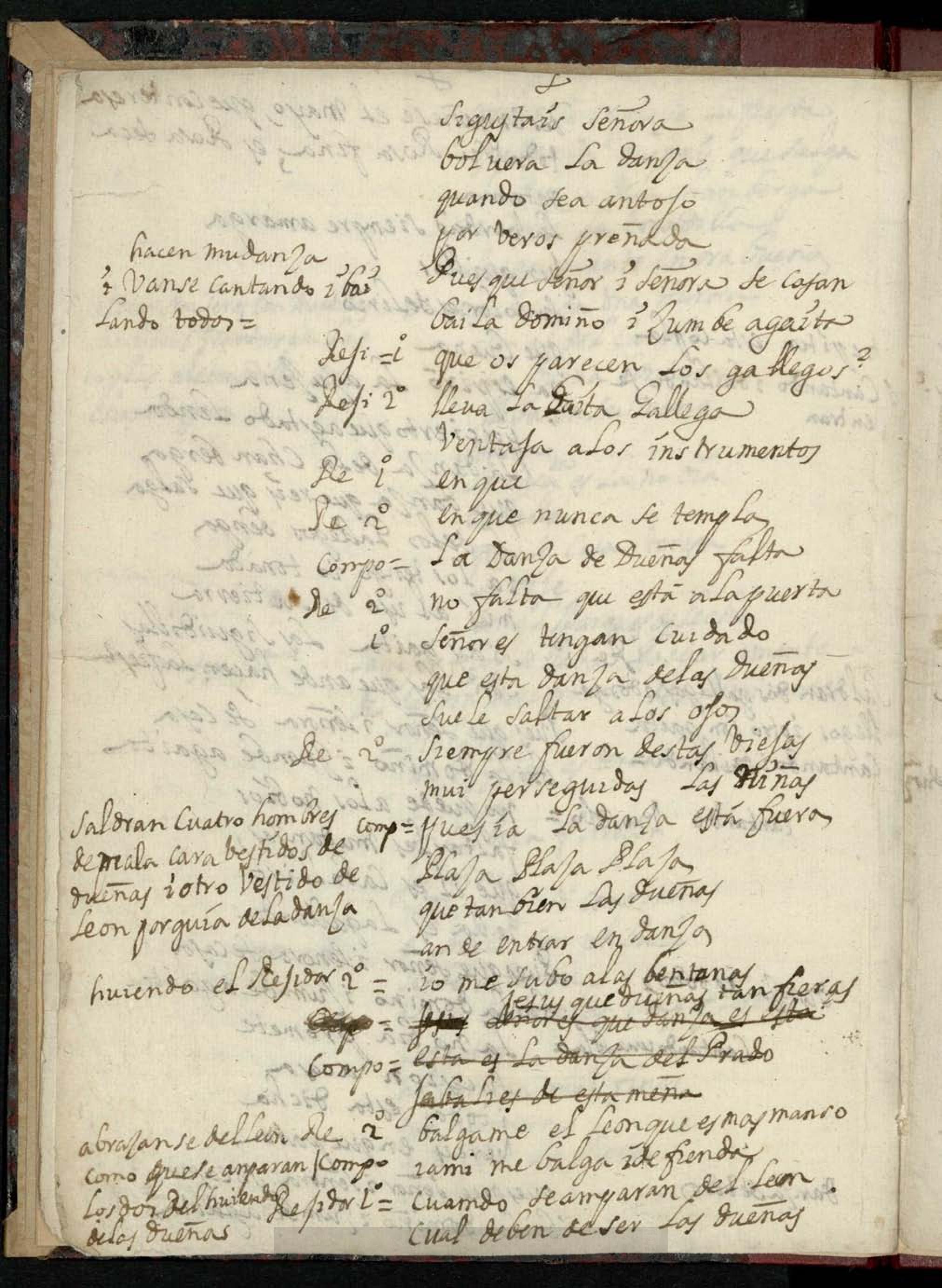 Notas: 1) 4 hojas 2) Ms. autógrafo, con firma y rúbrica del "Mtro Leon" en el f.4v. La escritura se hace menos cuidada a partir del f.3v 3) En el ms. el título es "A las bodas de los excelentísimos señores marqués del Carpio y dña. Teresa Enríquez de Cabrera, mis señores", aunque URZÁIZ [396] lo cataloga como "Los dos regidores". El matrimonio entre Gaspar de Haro y Guzmán, marqués del Carpio, y Teresa Enríquez de Cabrera tuvo lugar en 1671, por lo que es probable que este ms. date de dicho año 4) Texto a una columna, situada en la mitad derecha del folio, quedando el lado izquierdo para los nombres de los personajes que intervienen y las acotaciones 5) Algunos versos tachados en f.1r, f.2v. y f.3v. En este último hay una corrección del dramaturgo |