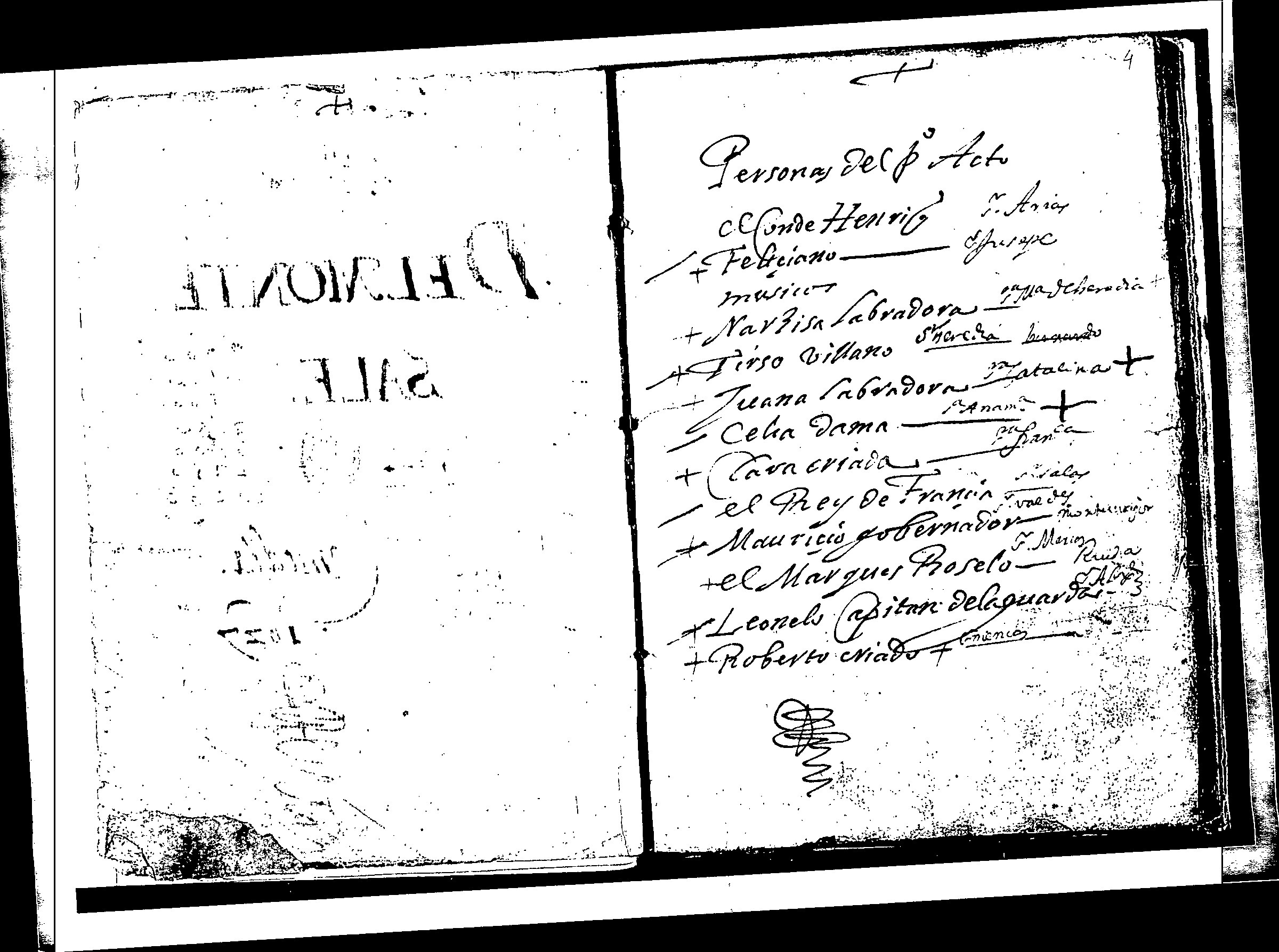 1) Ms. 0026, BNE Res. 94, "Del monte sale quien el monte quema" 2) El manuscrito incluye un reparto, de mano diferente a la de Lope y similar a la que introduce una acotación en el f.5r, junto al elenco de personajes del primer acto en el f.3r 3) Los datos disponibles no permiten hacer identificaciones completamente seguras de la mayoría de los actores que figuran en este reparto. Hay que señalar, además, que en dos ocasiones se asigna el mismo papel a dos actores, sin que se tache ninguno de ellos, por lo que no podemos estar seguros de quién terminó participando en esta representación. A partir de la información disponible en DICAT, este reparto posiblemente corresponde a la compañía de Juan Jerónimo de Heredia, quizá de hacia 1628 ó 1629. ¿Pudo ser el reparto para el estreno de la comedia en Madrid en la primavera de 1628? 4) El manuscrito contiene al final licencias de representación fechadas el 19/05/1628, 28/09/1628 y el 01/10/1636 |
