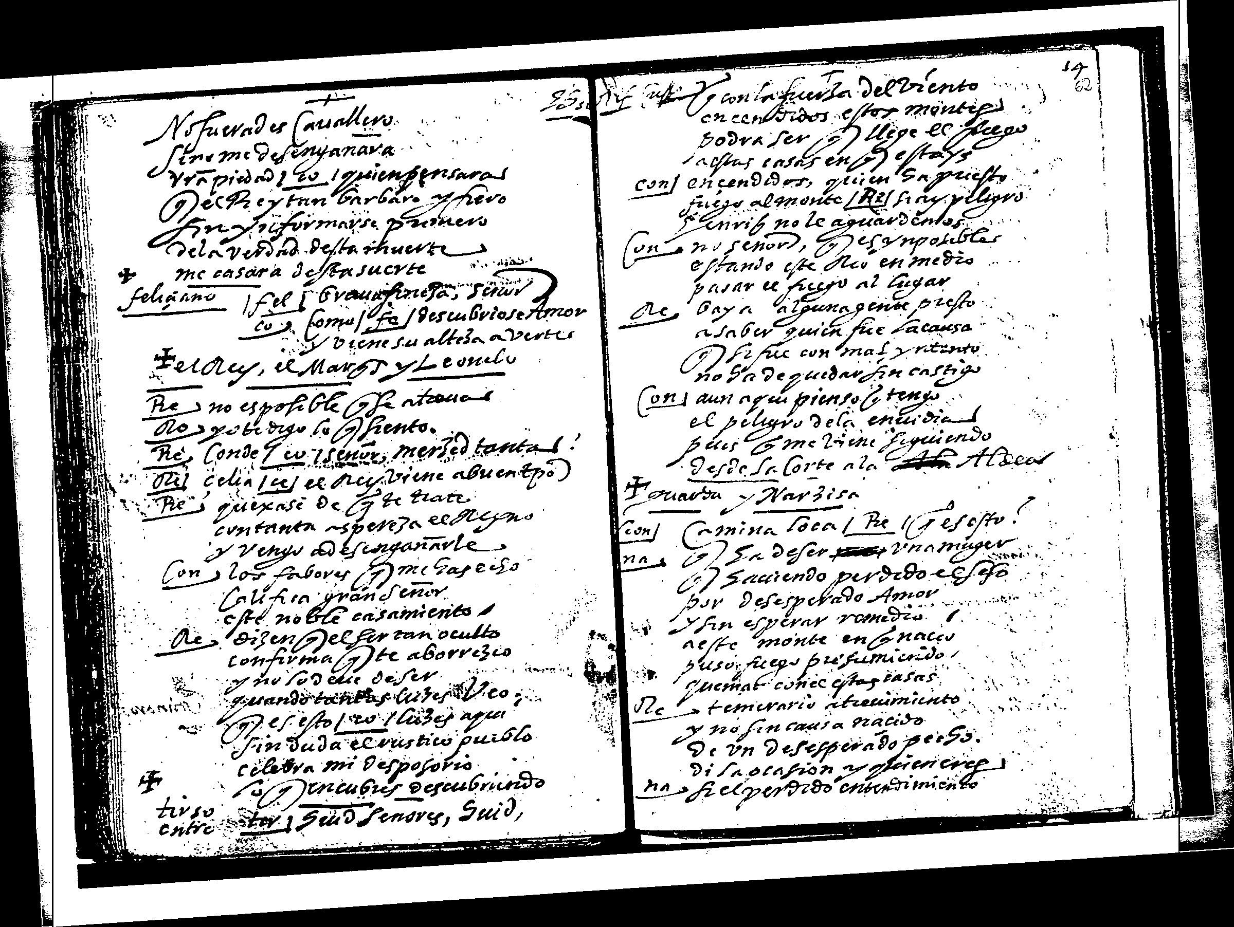 1) Ms. 0026, Res. 94 (BNE), Lope de Vega, Del monte sale quien el monte quema 2) La que 35- de una vuelta grande alrededor de todo la q muchas veces |